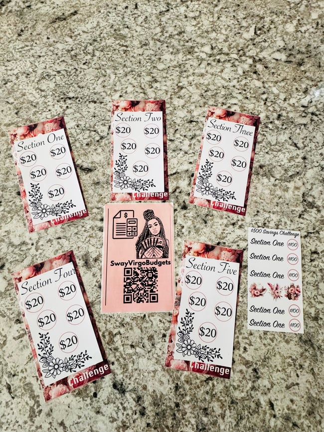 You will get 5 Cash Envelopes with inserts size of the cash envelopes is A6 if you would like a different size just message me on here different amount can be applied to all savings challenges insert are for A6 if you would like for them to fit inside of the envelope send me a text